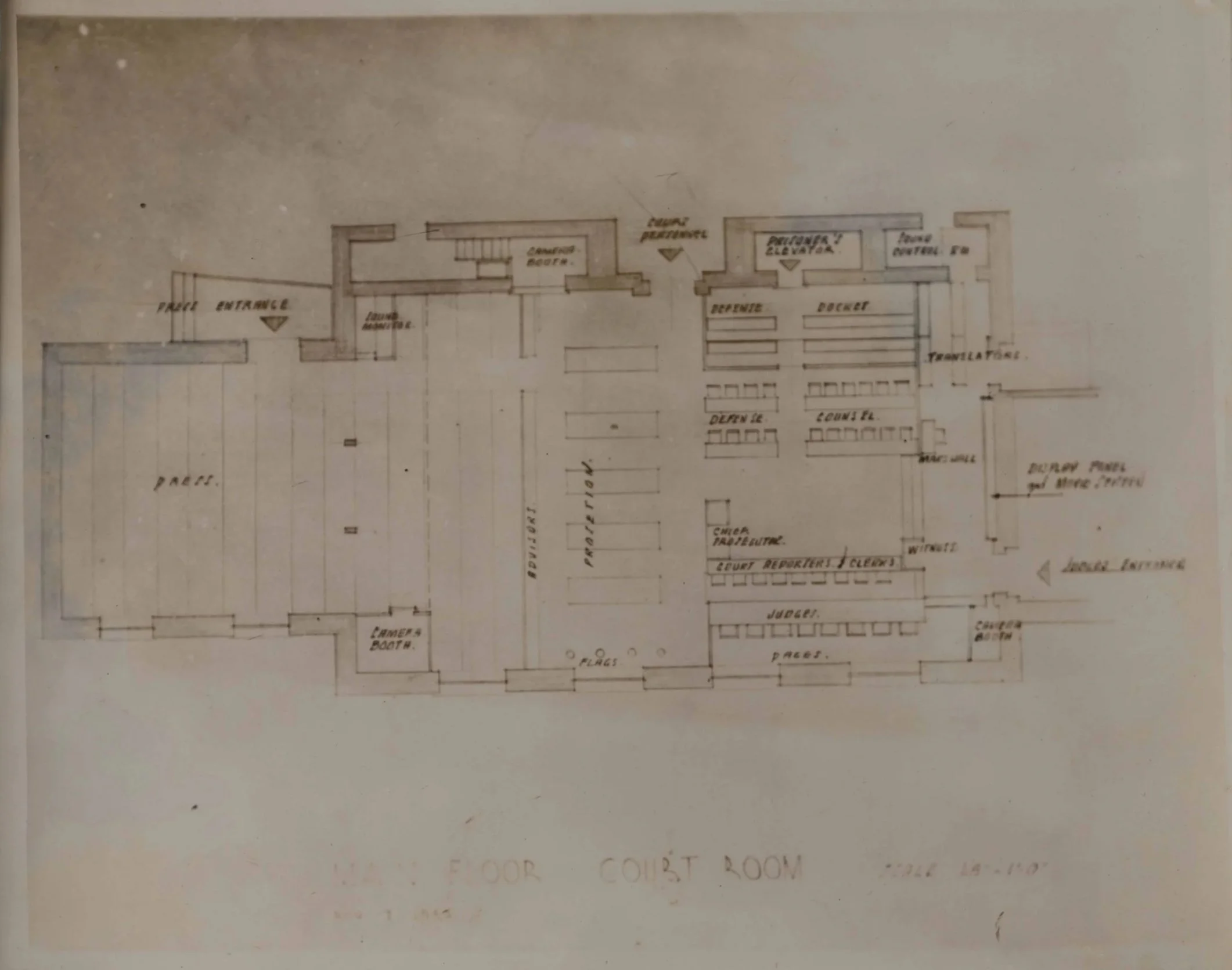 Courtroom blueprints showing seating assignments, KLMR Acc. 1485 12/1.